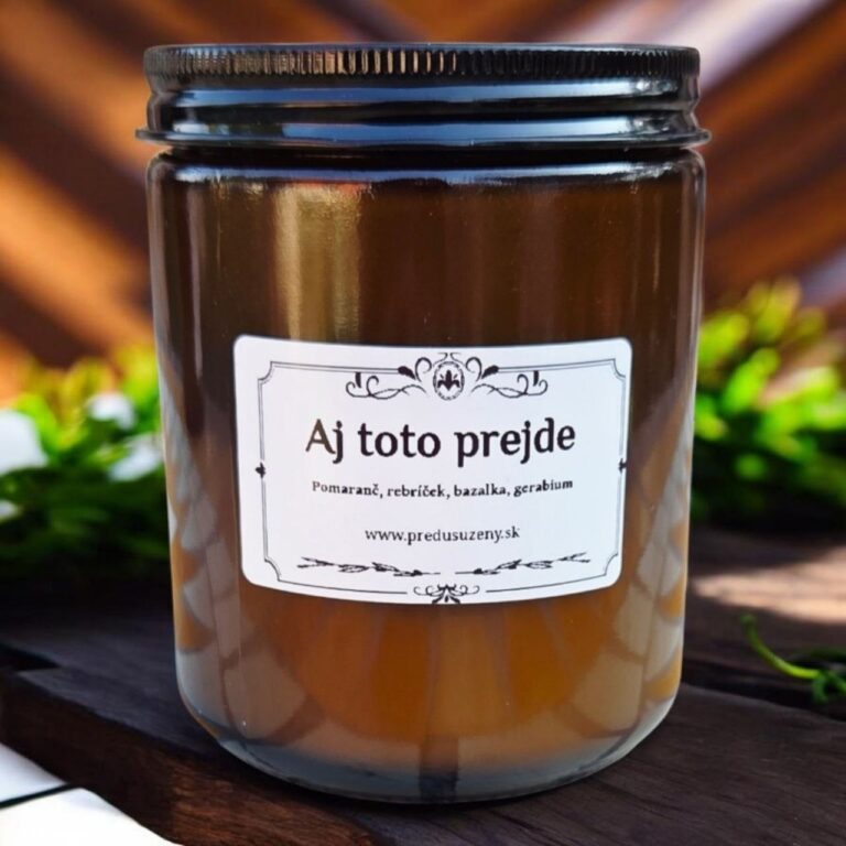 sójový vosk, sklo, esenciálne oleje, drevený knôt, 200 g, horenie cca 40 hodín