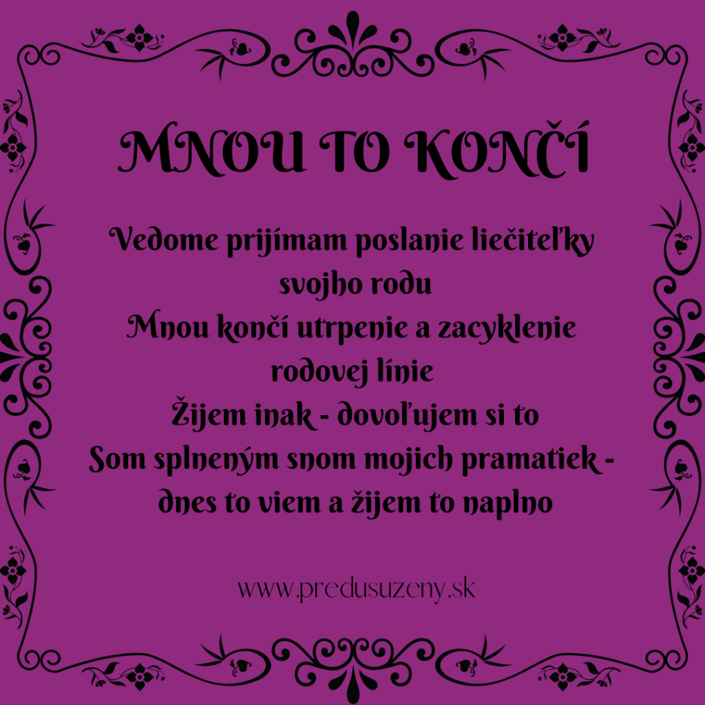 A tak - je našim poslaním - plne prijať príbeh svojho rodu, objať ho, stať sa ním. A potom - ho prerásť a žiť inak.