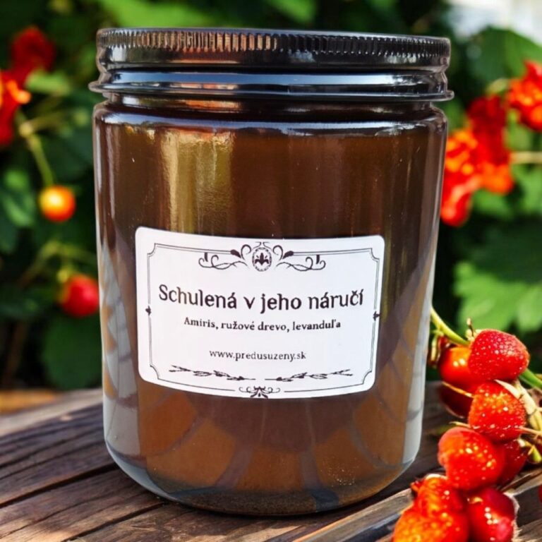 sójový vosk, sklo, esenciálne oleje, drevený knôt, 200 g, horenie cca 40 hodín